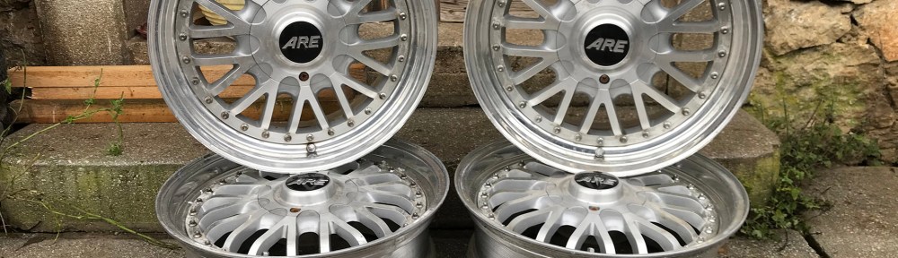 Here we have a really rare set of ARE Mesh wheels. They are 2 piece, weld together. Pretty lightweight.