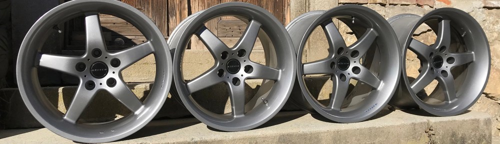 A rare set of ZEIT 5-spoke forged wheels. No damage. Made in Japan by Taneisha. Faces were repainted recently (gunmetal colour). Original stem valves, original centre caps. Custom made chrome stickers.